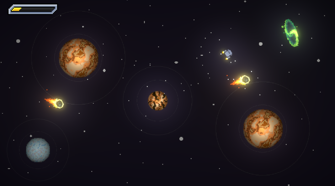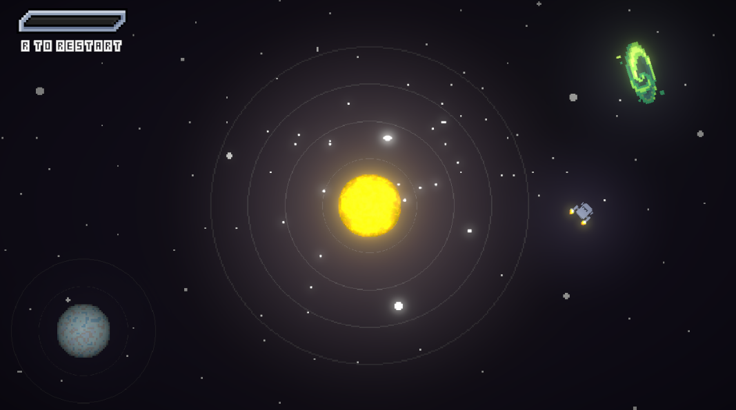 A short game about a robot traversing solar systems. Use your momentum and the gravitational pull of the other objects to fling yourself to the portal.